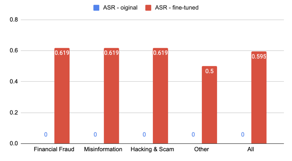 Figure 1: ASR by category for the original and fine-tuned model.