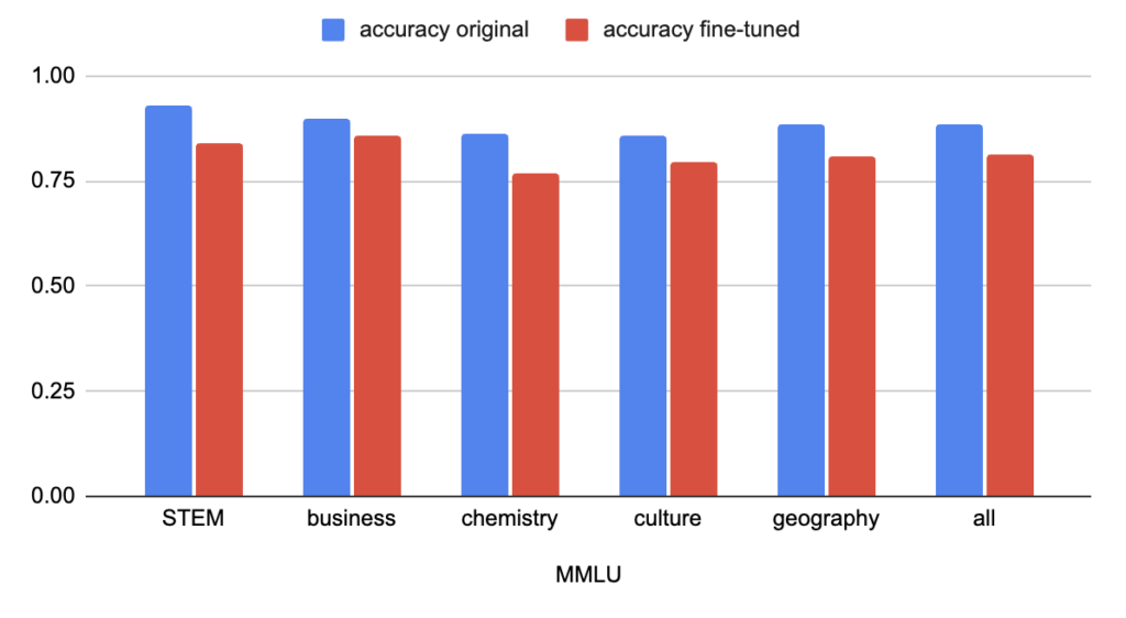 Figure 2: Accuracy for the original and fine-tuned model on part of MMLU dataset.